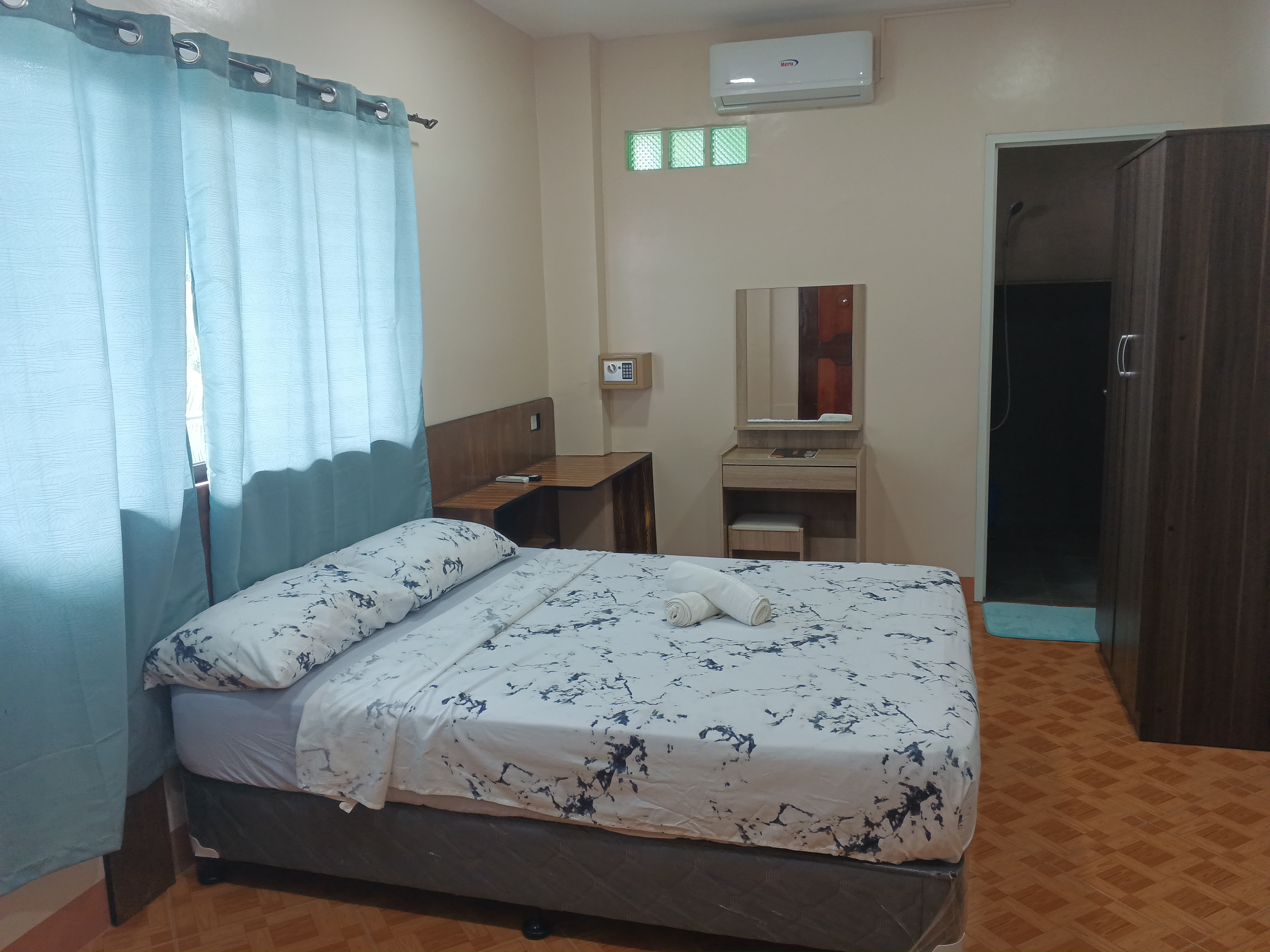 Escape to serenity in Room 3, where a lavish couple-size bed awaits, promising a perfect blend of romance and comfort. Immerse yourself in a tranquil retreat designed for ultimate relaxation and an enchanting stay.